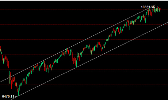 美國的華爾街實際上可以為所欲為,甚至美國政府都不得不與之交好,輕易不敢得罪,否則華爾街可能讓總統下臺。但是即使這樣,華爾街也不輕易做空美國股市和債券、美元等。2011年,美國其實經濟也好不哪去,但美國首先打擊了歐洲債券市場,一場歐洲債務危機之下,沒有人再去關心美國的經濟是好是壞,美國國內矛盾也都轉移到了歐洲。現在,美國經濟就好嗎?通過財經日歷不難發現,美國的失業率似乎不再繼續降低,而非農數據時好時壞,這些重要的指標都難以下結論說美國經濟已經高枕無憂了,隨時可能出現大問題。比如債券收益率最近開始走高,股市走勢猶如壓彎了的鋼絲,隨時可能下沉,而在美國可能出現金融危機時,美國開始把目光轉向中國A股,借A股上漲出現泡沫,來拼命打壓A股,因為美股已經難以有力地上漲,當華爾街沒事干的時候,意外事件可能就會在別國發生。讓我們來看看道指的走勢特征。見下圖。