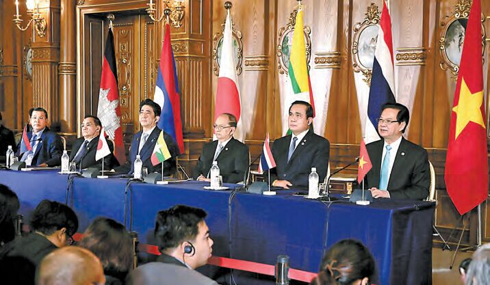 為期一天的首腦會議由安倍主持。湄公河區域5國領導人泰國總理巴育、緬甸總統吳登盛、柬埔寨首相洪森、老撾總理通邢、越南總理阮晉勇出席會議。會議通過了以加強湄公河區域基礎設施建設為中心內容的共同文件《新東京戰略2015》。各方表示將為實現湄公河區域的「高質量增長」展開合作。