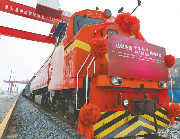 滿載醫療設備、家用電器與建材的貨物班列從連雲港中哈物流基地啟程,一周即可抵達哈薩克斯坦的阿拉木圖。作為中央提出「共建絲綢之路經濟帶」戰略構想后投運的首個實體平臺,中哈物流基地是中哈兩國政府重點推動的一帶一路建設項目,已運行一年。