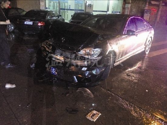 可是,過了一會兒,寶馬越野車又從離開的方向回來,飛快地迎頭撞上奔馳車。奔馳車一下被撞出2米多遠。