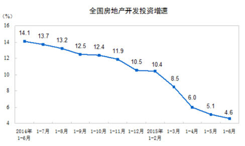 1-6月份,全國房地產開發投資同比名義增長4.6%(扣除價格因素實際增長5.7%),增速比1-5月份回落0.5個百分點。其中,住宅投資增長2.8%,增速回落0.1個百分點。住宅投資占房地產開發投資的比重為67.1%。