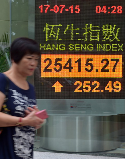 2015年7月17日,香港恒生指数上涨252.49点