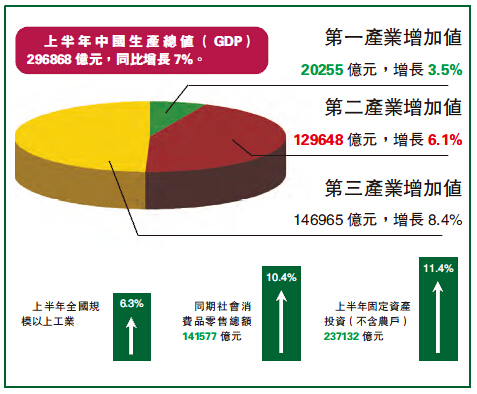 【香港商報網訊】2015年是中國經濟運行相對最困難的一年,但也是「走出困局」的關鍵一年。全年時間已然過半,在中國資本市場剛剛經歷一場前所未有的動盪之際,二季度宏觀經濟數據適時出爐,將市場關注的重心由股市轉至經濟基本面。二季度中國經濟增速為7%,略高於經濟師的預期。一攬子數據揭示目前中國經濟運行現狀,可謂亮點與隱憂并存。下半年經濟走勢如何,能否完成全年既定目標?本系列報道意在解讀最新經濟數據,通過對比分析,推演中國宏觀經濟包括樓市、金融、資本市場、匯率等的內在運行邏輯,前瞻中國經濟2015下半年、全年及未來走勢。在梳理諸多有利於中國經濟增長的紅利之同時,探尋制約中國經濟增長的負面因素,以期未雨綢繆,對症下藥。