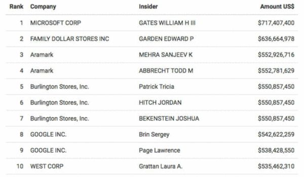 今年上半年,比爾·蓋茨已拋售超過7.17億美元的微軟股票,是出售股票最多的公司內部人士。