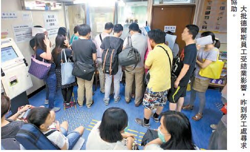 劳工处同时于全线13所就业中心设立特别柜位,优先为受影响员工提供登记及就业服务;而处方昨日收到逾200员工求助,处方会安排他们约见户主,追讨欠薪及补偿。