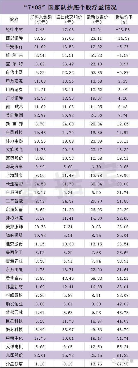 國家隊抄底7月8日被套股票名單大曝光
