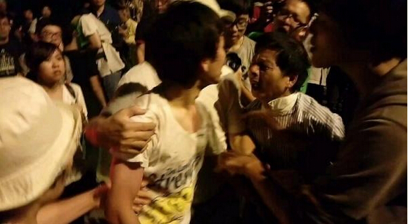 這個疑問或許能夠在后來流出的一段現場小視頻找到些答案。7月30日凌晨兩點,周進華夫妻在抗議現場找到了兒子周天觀,他們將孩子抱入懷,周天觀卻扳開父母大喝“離我遠一點!”在后來的拉扯中,這孩子不但將老爸的頭壓在腋下,還痛斥“我在為臺灣的未來努力,你做了什么貢獻?”,一旁的學生一邊鼓躁一邊要求父母“不要拉了”。媽媽看不下去打了他一下,兒子立刻罵到“你走開”。
