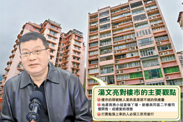 【香港商報网訊】記者莊海源、實習記者李灼彤報道:行政長官梁振英日前表示,未來3至4年本港新增的房屋供應將可達到8.3萬伙。今年變身成為「樓市大淡友」的紀惠集團行政總裁湯文亮直指,源源不絕的供應量是樓市的頭號敵人,由於地產商早知春江水暖,「於是將小姐當做丫環,新樓與同區二手樓同價開售」,新盤一Q清袋之聲此起彼落。但他認為,樓價轉勢會是遲來的冬天,不會不來。