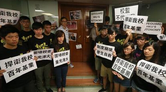 這次沖擊校委會事件中,不少政治人物連日來包圍校委會會議場地,更唆使小部分學生做先鋒,以配合他們用暴力和禁錮等手段強迫校務委員做他們的橡皮圖章,這完全是以「軍閥手段護學閥」的卑劣做法。陳文敏沒有博士學位,擔任教授之職已是破格之舉,在任院長期間又沒有管理好學院,只顧政治而不事學術,能力如何已昭示於公眾。當校內文件都顯示陳文敏捐款處理不當甚或手腳不乾凈,更有報道指陳文敏已被廉署立案跟進之際,他還是要強數以萬計港大教職員、學生和校友,以至百萬納稅人所難,甚至不惜以「曹錕模式」,動員多位傳媒「大亨」、利用報章等社會公器捕風捉影,以至以公民黨梁家杰、余若薇、吳靄儀、教協葉建源、民主黨單仲偕為首的「港大關注組」、「港大校友」等外來干預者,令港大陷於政治火海之中,凡在明德格物校訓下學習、做學術的學生學者,實在難以相信他有資格擔任副校長。陳文敏為了副校長的職位,甘願冒天下之大不韙,而要贏得一個「普天之下最不要臉」的國際稱號,這又何苦呢?難道因為一己之私,就要搞得百年港大生人勿近,就要港大百年基業被毀嗎?那些三流學閥、九流政棍,快快滾出港大吧!