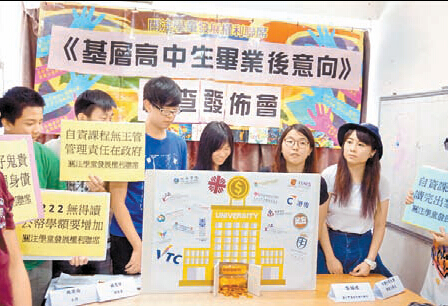 關注學童發展權利聯席日前向百多名基層高中生進行升學意向調查,發現有85%受訪者畢業后將繼續升學,有66.3%會選擇公帑學士學位,有30.5%及26.3%學生視自資學士學位及26.3%公帑資助副學士學位為次選,同時有81.9%受訪者同意增加公帑資助學士學位。調查同時發現,有70.3%受訪者認為自資課程收費不合理,83.8%要求政府規管自資課程的財政運用。