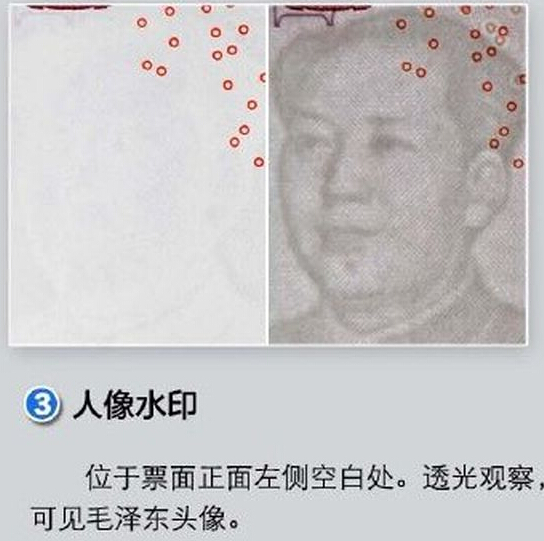 三、人像水印於左側空白處,透光可見毛澤東頭像。