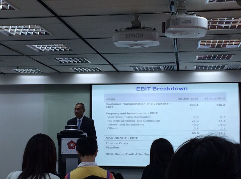 他又指,貨櫃業務在第二季表現遜色,而現時市場亦出現供過於求的失衡,需求下跌5%,而供求則增長6%,他預料至16年供求失衡問題會有改善,但對業務感到滿意。