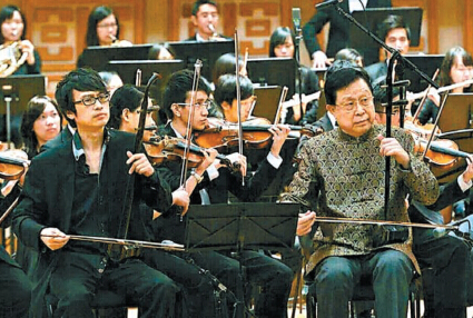 丈夫王國潼(前排右)与儿子王憓(前排左)都是二胡演奏家