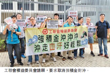 【香港商報网訊】記者王珈莉報道:工聯會權益委員會10多名成員昨早由金鐘海富中心游行至政府總部外請願,不滿在現行的強積金對沖機制下,戶主可用強積金供款對沖遣散費,要求財經事務及庫務局制訂取消強積金對沖時間表,并向政府遞交請願信。