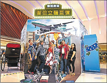 據了解,九龍灣德福廣場於今年8月8日至31日舉行名為「留住立體回憶」,以3D立體畫方式創作7幅具香港懷舊風情的畫作,包括由黃俊飛創作的《九龍城的天空》、《工廠妹萬歲》、《地下鐵開幕》、《人力車》、《夏日泳灘》以及由鄺世杰創作的《上海理發店》與《雍雅山房》。香港商報記者 鄺健愉