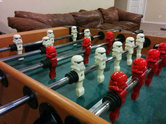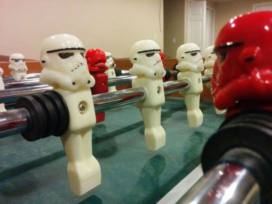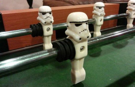 他將桌上足球的運動員人偶換成了《星球大戰》裏的暴風兵,並且這些暴風兵還都是用3D打印技術打造出來的。