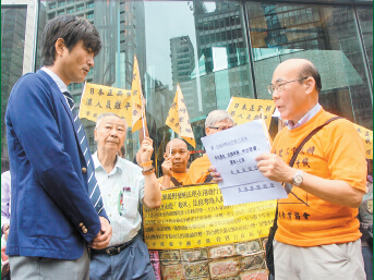 香港索償協會一行30多人,昨晨9時半在中環郵政總局外集合,其后游行往交易廣場外,期間高叫「日本發行貨幣不兌現」和「港人失掉財富與金錢」等口號,最終成功向總領事館代表遞交請願信。