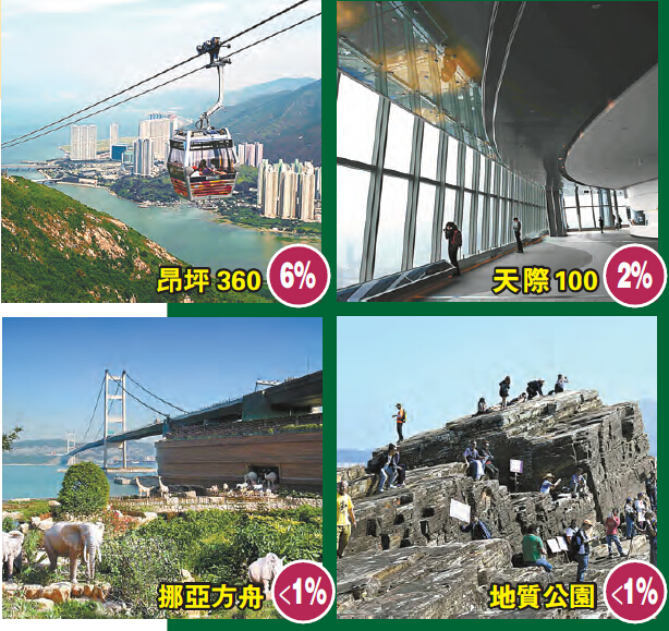 相比起其它国家及地区,香港旅游业的发展步伐明显滞后。报告称,自香港迪斯尼乐园在2005年开幕后,香港在推出受旅客欢迎的新景点上无以为继,其中昂坪360仅有6%旅客选择到访,挪亚方舟及地质公园不足1%;新加坡自2008年起几乎每年有新景点落成,包括滨海湾及圣淘沙综合度假村、河川生态园及即将开幕的新加坡国家美术馆;韩国虽然没有新景点,却成功将人气韩流剧集或电影的拍摄场地、即现有风景名胜重新包装。