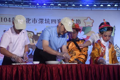 新北市深坑區16日下午舉辦“2015年深坑四寶文化節”,推廣在地特色產業,而所謂的“深坑四寶”包括黑豬肉、綠竹筍、茶葉與最為民眾所熟知的豆腐。