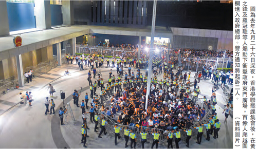 【香港商报网讯】去年反对派策动违法「占领」行动,引起社会震怒!执法部门也密切跟进。反对派学生团体学民思潮、学联的领袖及成员,近日陆续收到警方通知会被起诉,其中学民思潮召集人黄之锋将被控涉嫌煽动他人参与非法集会,及参与非法集会两罪名;学联秘书长罗冠聪将被控煽动他人非法集会。另外,激进反对派、独立立法会议员黄毓民昨日到警署报到,指警方将会控告他于去年的行政长官答问会上「掟杯」袭击特首梁振英。控告煽动他人及非法集会学联、学民思潮等团体于去年9月26日号召学生,在政府总部外进行罢课集会,之后多位学生冲入政府总部外的广场,跟警员发生冲突,当时情况极度混乱。事件亦间接启动了非法占领行动。