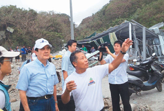 馬英九昔日視察風災。(網絡圖)