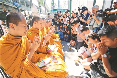 8月19日,泰國僧人在四面佛神廟為遇難者舉行祈福儀式供圖/IC