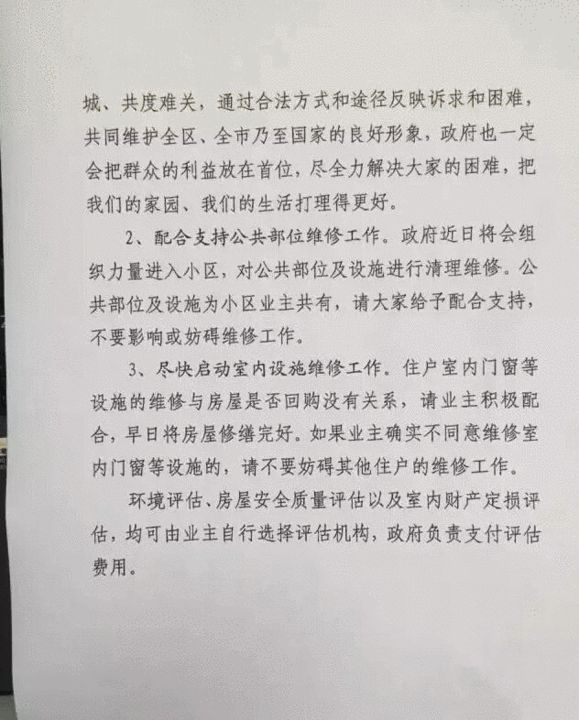 5.會給業主表格,統計回購還是修繕,反饋給政府。政府會出面協調,主管城建的區長說會派工作人員,以及讓物業幫聯系業主,恨不得后天就把統計表統計上來;
