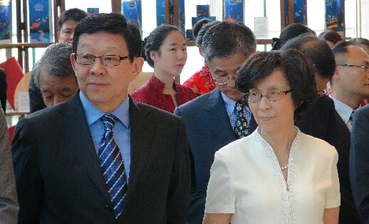 海峡两岸关系协会会长陈德铭24日中午在福州世茂洲际酒店举行简短丁式,欢迎率团前来参加两岸两会领导人第十一次会谈的台湾海基会董事长林中森一行。