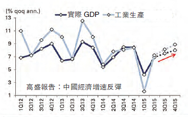 高盛評論分析稱,如工業產出、PMI和出口等令人失望的官方數據所示,中國經濟增速在最近幾個月實質性地放緩了。的確,有些時候,中國經濟活動的代替指標暗示經濟增速比官方GDP數據顯示的更低,尤其是在產品制造和大宗商品密集型產業。由於抗戰紀念70周年活動導致大北京地區生產設備的暫停,短期經濟增長前景更加復雜。短期而言,三季度經濟的疲軟在所難免,潛在的加速增長很可能出現在9月,9月的數據將在10月初、中旬公布。