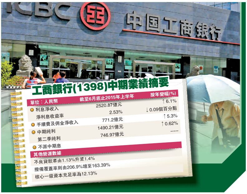 截至上半年底止,工行不良貸款總額為1634.95億元,不良貸款率為1.4%,貸款減值準備餘額2671.38億元,比上年末增加95.57億元。該行管理層認為,雖然不良貸款有所上升,但橫向比較來看,仍保持中國及全球同業較好水平。面對下半年經濟下行壓力,易會滿表示將全行上下要打一場資產品質的「攻堅戰」。并通過三項措施控制壞帳水平,包括加強新增貸款管理、建設信用風險監控中心以及提升自身信貸管理水平。年初該行預計壞帳率將控制在1.45%,至於下半年是否有新的目標,管理層表示會根據外部環境變化來制訂,但目前仍在可控水平。