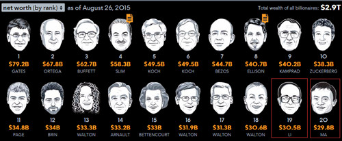 “彭博億萬富翁指數”最新數據顯示,馬雲憑借298億美元淨財富,以3億美元微弱優勢擊敗王健林,登頂大陸富豪榜,而李嘉誠憑借305億美元淨財富,重回華人富豪榜首位。