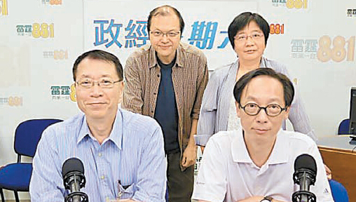 雷鼎鳴(前左)及馮孝忠(前右)出席商臺節目。