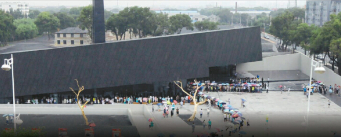 參觀者冒雨排隊參觀侵華日軍第731部隊罪證陳列館新館