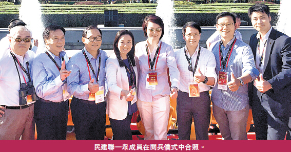 民建聯立法會議員陳克勤亦在社交網站分享多張圖片,贊嘆中國的多種軍事裝備;他特別對中國的空軍有興趣,拍下多張空軍裝備的照片,包括無人機等。民建聯另一立法會議員葛佩帆亦張貼多位該黨成員的合照,包括與該黨主席李慧瓊及警務處處長盧偉聰等人合影。