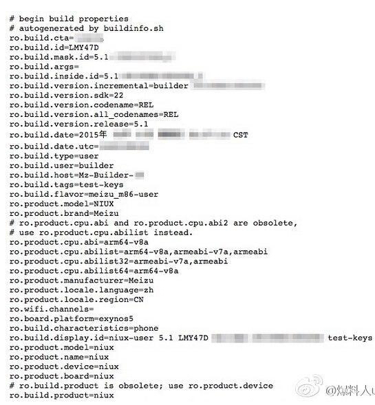 而安兔兔這樣的說法,也得到了消息人士的證實。按照爆料達人@Upleaks在微博上的說法,魅族NIUX是真的,(配有)Exynos 7420處理器,至于內部項目名稱則為M86。同時根據@Upleaks放出的魅族NIUX源代碼信息也證實了該機確實搭載的是Exynos 7420處理器,至于平臺信息中出現的Exynos5也與三星GALAXY S6的源代碼信息相同,所以不出意外的話,魅族NIUX應該沒有裝載MTK處理器。