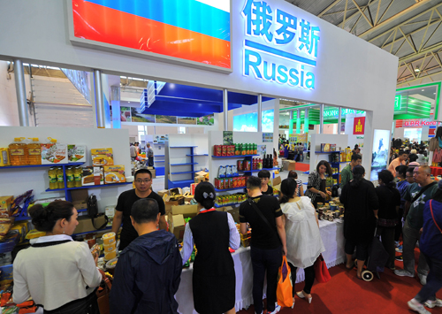 9月6日,市民在俄罗斯展位前选购特色产品。