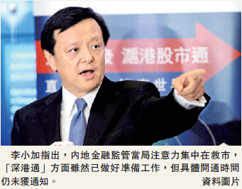 而在8月7日,李小加指出,內地金融監管當局注意力集中在救市,「深港通」方面雖然已做好準備工作,但具體開通時間仍未獲通知。