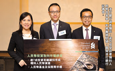 中國人民銀行上月突然將人民幣貶值,拖累人民幣對美元匯價在8月中共下跌約3%。上月中旬,渣打銀行在內地股市大幅波動及人民幣匯價下跌期間,進行了一項人民幣走向調查,訪問了527名介乎18至64歲港人對於人民幣投資意向的看法。