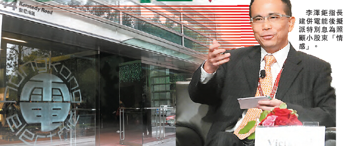 對於長建是次「豪派」特別股息,李澤鉅指是因應部分電能股東意見而作出:「派5元(特別息)係感情,從Logic(邏輯)上就唔肯(派特別息)……由於是次重組『都大動作』,在沒有影響大方向的情況下,都可以開番個Party(派對)」。李澤鉅指,過往曾有幾次忍受過派息的誘惑,但基於「分咗就冇咗單刁」,故留待今天才派特別息。他又指,是次合併獲得長和系主席李嘉誠支持,強調「一定係Group Chairman(李嘉誠)贊成才會落實合併」。