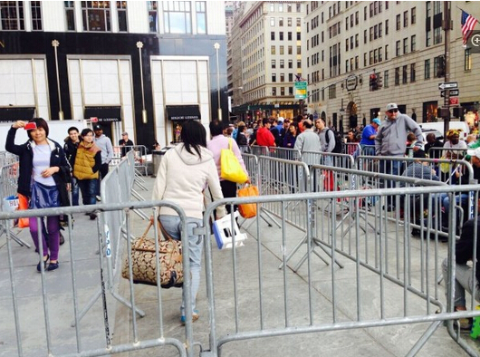 iPhone 6發布會首日,美國第五大道蘋果店排隊盛況。