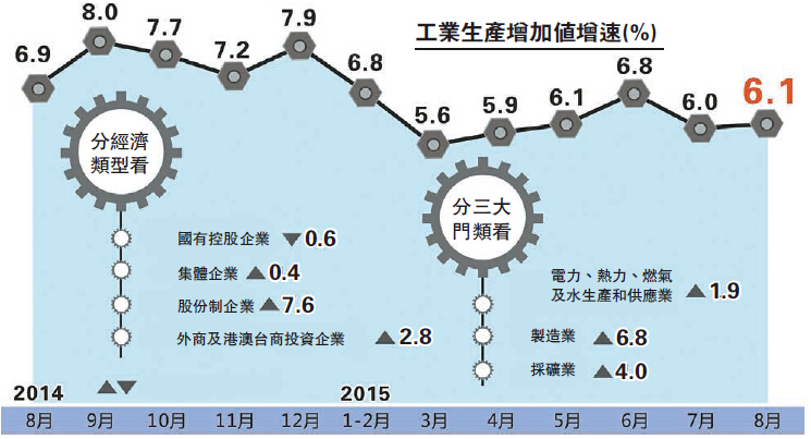 【香港商报网讯】国家统计局昨日公布,8月规模以上工业增加值年增6.1%,不如市场预期的6.5%。专家指出,内外需求偏弱,工业生产下行压力依然较大。不过,也有分析指出,目前经济下行压力持续,部分指标出现波动,但经济稳定的基本面没有改变,随着前期政策措施发挥效力,经济运行中的积极因素在集聚。
