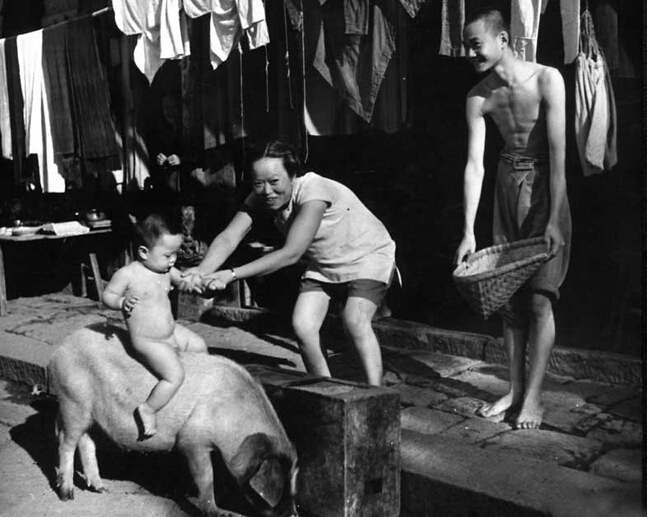 1941年,四川,騎豬的兒童(Carl Mydans拍攝)