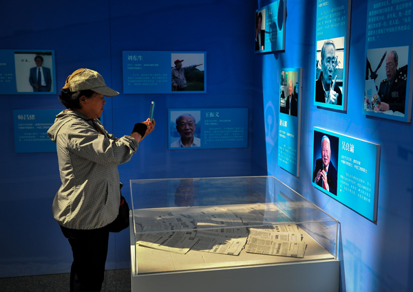 9月15日,參觀者使用手機拍攝展出的科學家簡介。