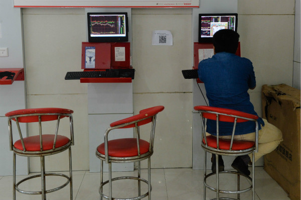 9月15日,股民在南京一家证券营业部关注股市行情。