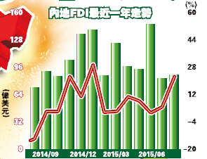 就行業而言,內地服務業和高技術製造業對外資具有較大吸引力。今年1至8月,服務業實際使用外資519.4億美元,同比增長兩成,佔內地實際使用外資總量的六成;其中,高技術服務業實際使用外資55.1億美元,同比增長近六成。