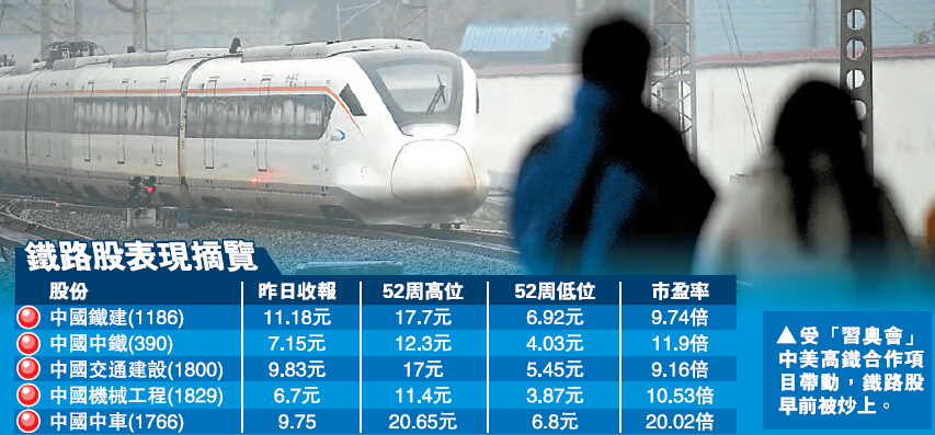 在習近平訪美之前,鐵路基建受到熱炒,昨日出現回調,但從基本面觀察,鐵路基建公司業務依然比較穩定,中長線投資值得關注。