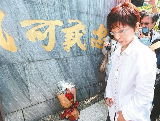 昨天是臺灣抗日烈士余清芳百年忌日,洪秀柱到臺南玉井虎頭山頂的余清芳紀念碑悼念。 聯合報圖