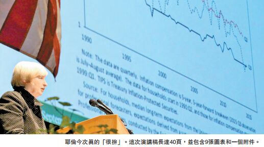 耶倫當日在馬薩諸塞大學阿默斯特分校經濟系以「通脹動態和貨幣政策」為題發表了這次講話。這次演講沒有問答環節,因此是否指引市場預期將完全取決於耶倫。據悉,耶倫今次真的「很拚」。這次演講稿達張40頁,并包含9長圖表和一個附件。在講稿到結論部分,耶倫多次停頓并咳嗽,聲音顯得愈發疲憊。阿默斯特分校官員表示,耶倫在演講后已立刻接受醫療護理。聯儲局發言人稱,耶倫在宣讀長篇演講稿末段時候感到脫水,但之后感覺良好,她接受護理僅是「一種預防性措施」。