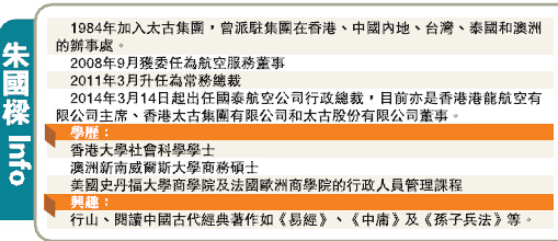 【香港商報網訊】國泰是本港最大的航空公司,僱用最多的航空業人員,2014年的營業總額達到1059億9100萬港元,而管理這龐大的跨國企業,想必需要驚人的魄力,但國泰的行政總裁朱國樑只是淡淡地笑說,「只要做好自己,一切便會自然成功。」到底是什麼理念,成就這位從訓練生到行政總裁的成功路?
