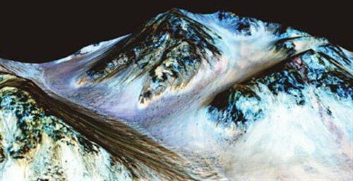 火星山丘斜坡上發現手指狀陰影條紋,被認為是由咸水流造成。NASA官網